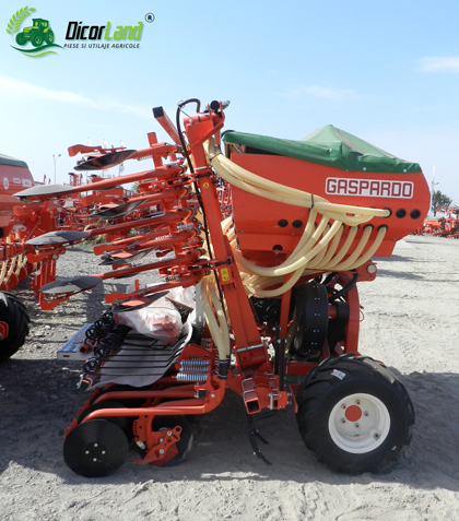 Semanatoare pneumatica de cereale purtata cu disc simplu si limitator de adancime reglabil.