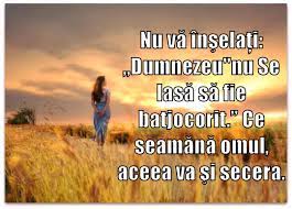 Oameni şi popoare- TOATE: Voi care nu sunteţi născuţi din Sămânţa Duhovnicească, divorţaţi, nu va mai rugaţi “TATĂLUI”, căci aveţi că tată pe diavol (Ioan, cap.8/44) De aceea se foloseşte de voi şi, curând, vă va cere de la Dumnezeu să vă cearnă ca pe grâu, dacă nu deschideţi ochii, să vă întoarceţi de la întuneric la lumină şi de sub puterea Satanei la Dumnezeu, ca să primiţi, prin credinţa în Hristos, iertare de păcate şi moştenirea împreună cu (toţi) cei sfinţi… Dacă nu vă pocăiţi, să vă întoarceţi la Dumnezeu şi să faceţi fapte vrednice de pocăinţa voastră…” (F.Ap. 26/17-20) Nu Dumnezeu ci, precum pe Iov- tatăl vostru vă va trece prin urgii apocaliptice! Puteţi striga după toate moaştele, să vă scape; Puteţi urla la toate foto-picturile iconate-făcătoare de bani mârşavi; Puteţi alerga la muntele vostru de pomeni, datini, tradiţii, lumânări-dacă puneţi la spate Atotputernicia, Jertfirea, Iubirea, Iertarea, Mântuirea, Morala, Învăţătura şi Neprihănirea Lui, dăruite gratis celui care crede în El! Altfel- rămâneţi o deşertăciune şi goană după vânt…