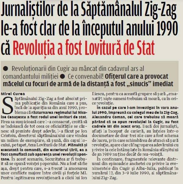 Am însă o nedumerire. Dacă așa stau lucrurile și BOR a fost de partea revoluționarilor din 1989 (așa se înțelege) cum explică domnia sa mesajul Patriarhului Teoctist din 19 decembrie 1989, la o zi după masacrul de la Timișoara? Dacă revoluția a fost inclusiv vrerea lui Dumnezeu, cum de BOR îl felicita pe cel care încerca să o înăbușe? E doar o întrebare pentru că în opinia mea ceva nu se leagă în logica discursului de astăzi.