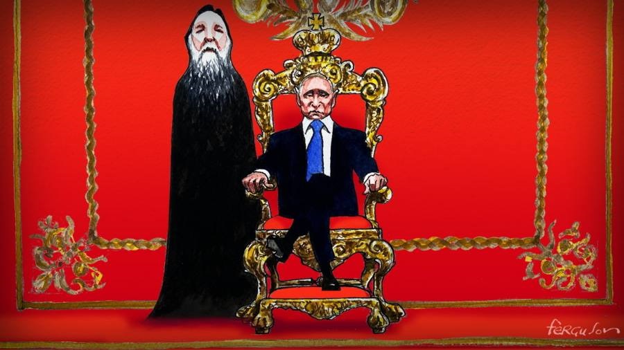b. Fără Ucraina, Rusia nu este un Imperiu, iar Putin se visează imperial“Dispariţia URSS este cea mai mare catastrofă geopolitică a secolului trecut” spunea Putin, nostalgic, în urmă cu mai puțin de trei ani. În manualele școlare rusești istoria este adaptată ambițiilor lui Putin: elevii învață despre Stalin că ar fi fost „cel mai glorios lider sovietic”, despre gulag, că a fost necesar întăririi Rusiei, despre Marea Foamete din 1937, care a făcut 1,5 milioane de victime, că e un soi de floare la ureche în comparație cu războaiele și rasismul americanilor. Biserica Ortodoxă Rusă tipărește azi calendare care îl glorifică pe Stalin; “să fii american este o crimă” spunea în urmă cu câțiva ani Alexandr Dughin, arhitectul și părintele spiritual al Eurasiei lui Putin. Persecuțiile sălbatice la care a fost supusă, în perioada stalinistă, Biserica Ortodoxă Rusă și credincioșii ruși sunt justificate de același Alexandr Dughin ca fiind o etapă necesară, obligatorie, de “purificare” a ortodoxiei de elementele “îmbibate de spiritul occidental”.